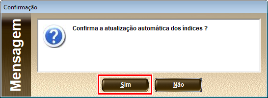 - Confirme a atualização dos índices clicando em Sim.